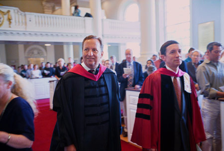 The School’s 187th Convocation, in the Memorial Church, was William A. Graham’s first as dean of the School; he was appointed dean by Summers in August after serving as acting dean since January 2002. Graham, Murray A. Albertson Professor of Middle Eastern Studies in the Faculty of Arts and Sciences, has served on Harvard’s faculty since 1973.