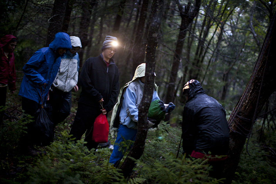 Justin Ide/Harvard Staff Photographer After cleaning up dinner, FOP’ers put food and other belongings into a “bear bag,â which is then hoisted into a tree for the night, away from camp.