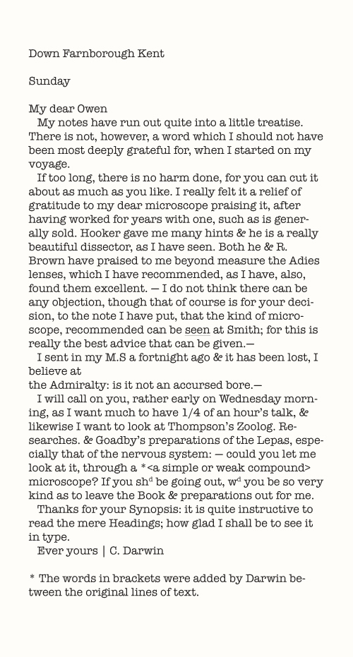 “We can tell with fairly good confidence which Sunday in 1848 he wrote this,” Sponsel said. “The two [Owen and Darwin] were working on a publication for the British Navy, a handbook for people on voyages to teach them how to make scientific observations.”