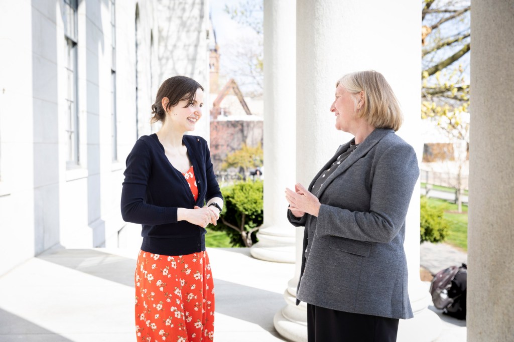 Lawrence Katz, Elisabeth Allison Professor of Economics (left), during a celebration honoring Stefanie Stantcheva, winner of John Bates Clark Medal.