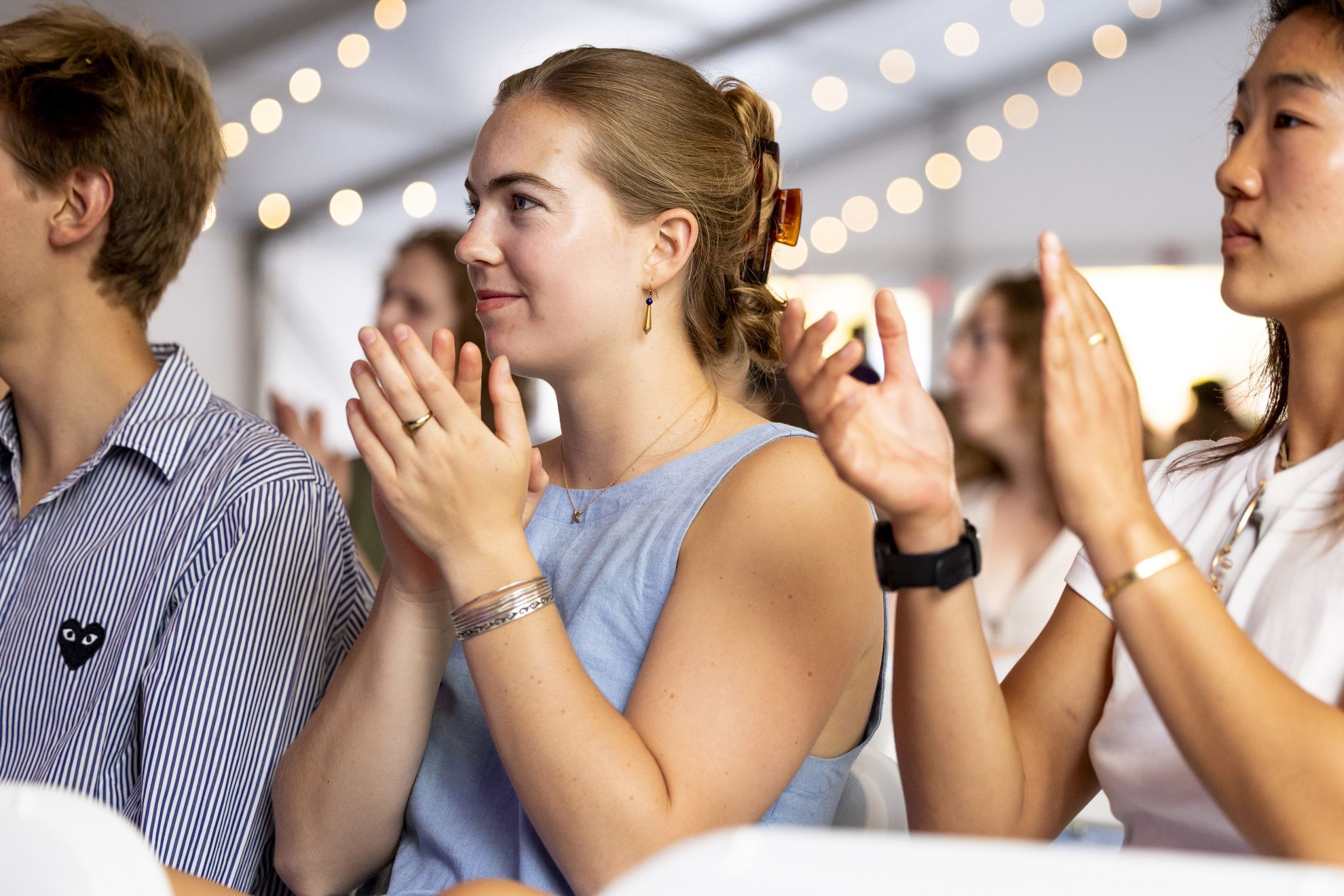 Paton Roberts ’25 applauds performers under the big tent.