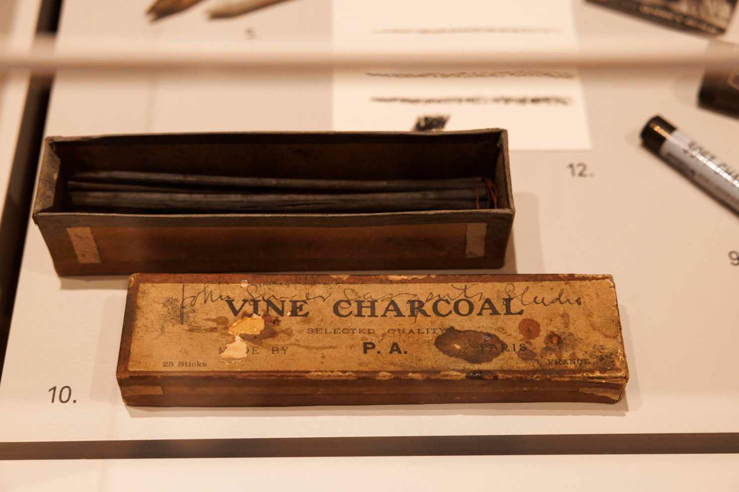 A “box of vine charcoal owned by John Singer Sargent” on display.