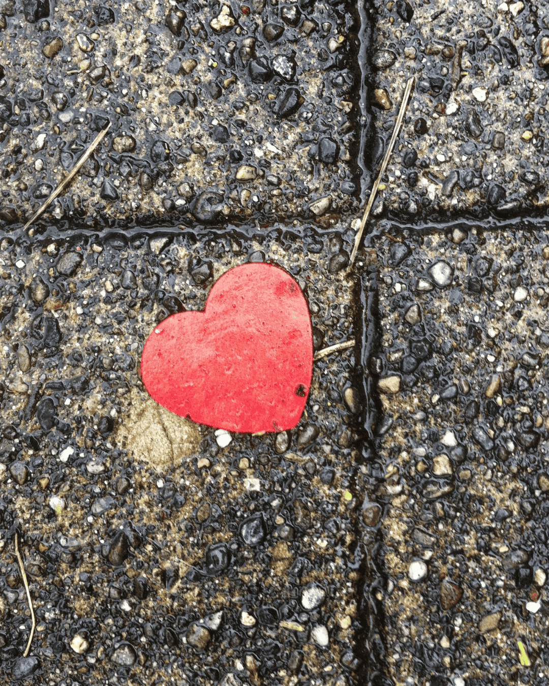 As it happened, I started seeing hearts everywhere — in a cloud, a bare patch of dirt, a chewed up and discarded piece of gum. For my first few years in Seattle, I took it as a little wink from the universe, a sign that I was on the right track, where I was supposed to be. Then, one day four years later, as I was revisiting my old neighborhood, I came upon another heart and it struck me — everywhere I am is the right place to be.