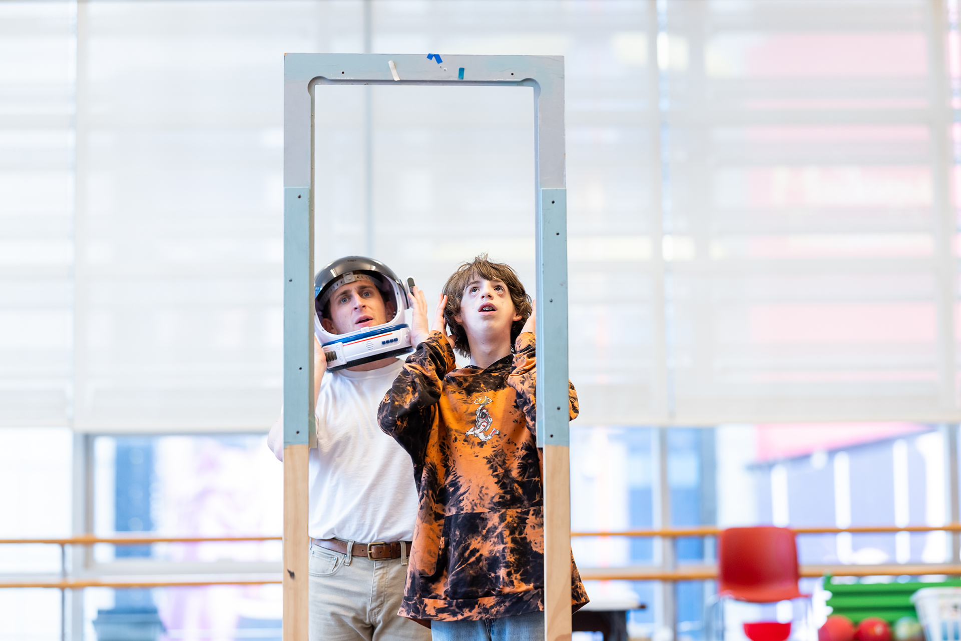 Nathan Salstone plays the role of Auggie’s imaginary astronaut friend. His character — newly invented for the stage — gives the audience a glimpse of Auggie’s internal world, bringing them along as he finds his footing.