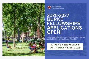 The Harvard Global Health Institute (HGHI) is now accepting applications for the HGHI Burke Fellowships, including the HGHI-Salata Burke Climate and Health Research Fellowship and the HGHI Burke Global Health Fellowship! Apply by 11:59 p.m.…